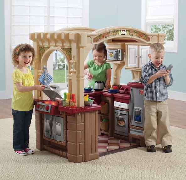 Игровой кухонный набор для малышей включает в себя технику из «нержавейки» с рабочими дверцами. В холодильнике даже есть воображаемая станция для воды и льда!