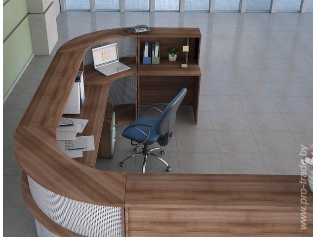 В центре приемной располагают П-образные и замкнутые конструкции. Они выгодно отделяют сотрудников от посетителей. Клиентам удобно подходить к администраторам с любой стороны. Прямую или угловую стойку предпочтительней расположить у стены. Однако к входящим посетителям стойка администратора должна быть повернута фасадом.