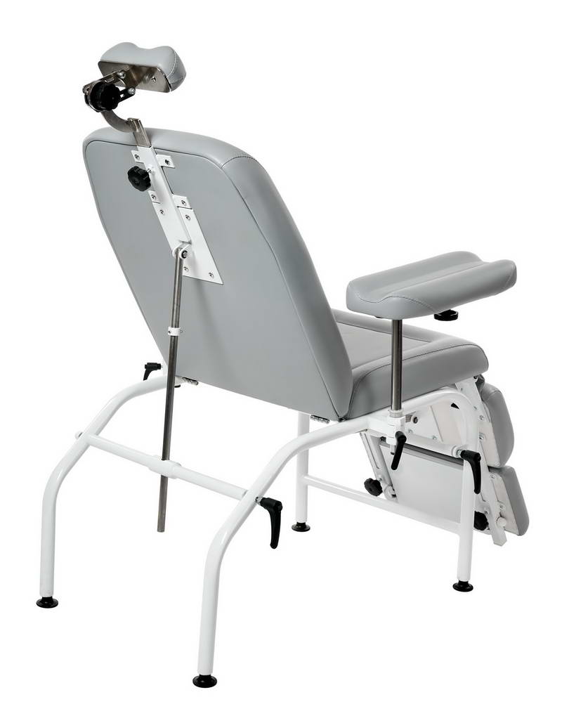 Каркас кресла изготовлен из стальной профильной трубы с порошковым полимерным покрытием, устойчивым к ударам, сколам и к обработке дезинфицирующими растворами. Опоры – регулируемые.