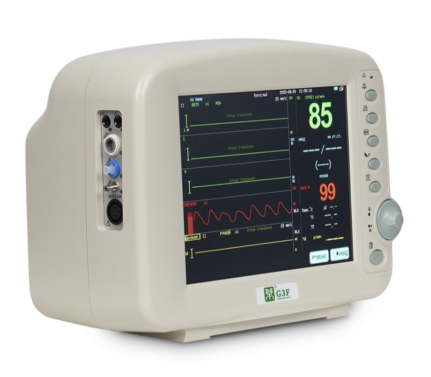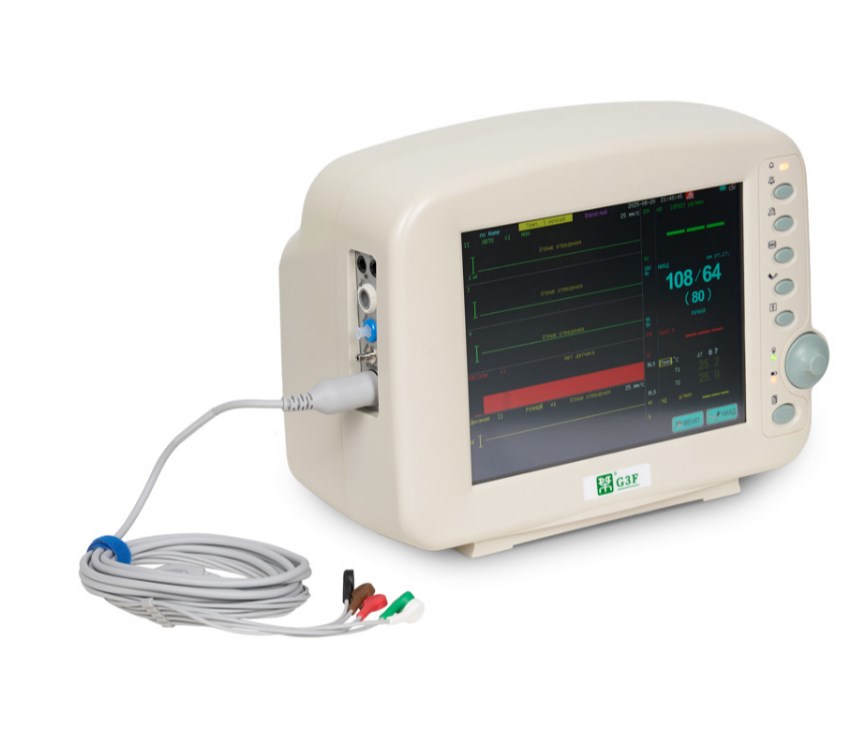 Монитор измеряет и выводит на экран показатели ЭКГ, неинвазивного артериального давления, сатурации крови, температуры, дыхания, пульса, частоты сердечных сокращений. Эта информация, наглядно представленная в виде цветных графиков, помогает медперсоналу быстро оценить состояние пациента.