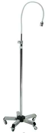 Светильник состоит из основания на колесах, штатива с регулировкой высоты и гибкого рукава.