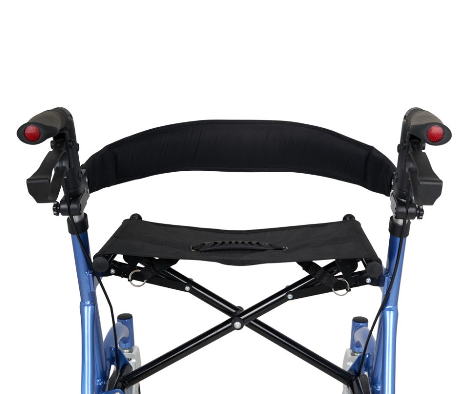Ходунки оснащены удобным сиденьем из прочного, моющегося материала. Оно позволяет делать передышки во время прогулки, а мягкий упор для спины даёт разгрузку позвоночнику. Прочный каркас обеспечивает безопасность пользователя при отдыхе.
