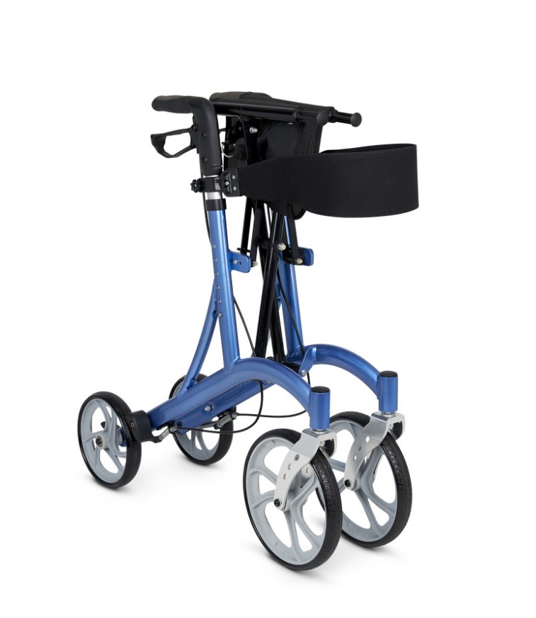 Рама ходунков легко складывается без использования инструментов. Это позволяет компактно хранить и перевозить устройство. Алюминиевый сплав, из которого сделана рама, обладает малым весом, что дополнительно упрощает транспортировку ходунков.
