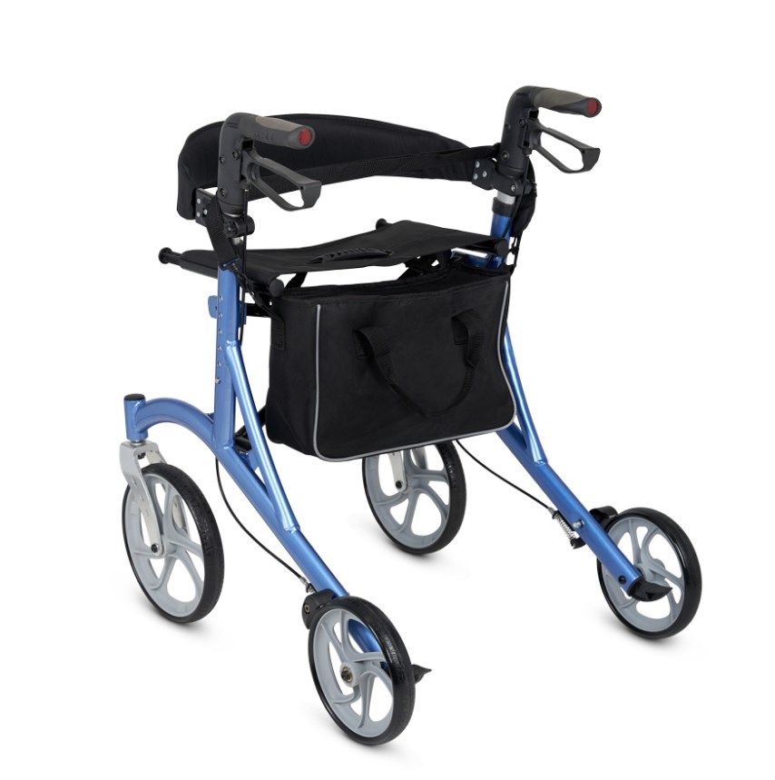Каркас ходунков выполнен из высокопрочного сплава и выдерживает нагрузку до 120 кг. Это особенно важно, учитывая, что ходунки оснащены сиденьем, а значит, должны выдерживать полный вес пользователя без опоры. При высокой надёжности, ходунки легко собираются без инструментов — достаточно просто разложить раму, повесить сумку, и можно начинать использовать устройство.