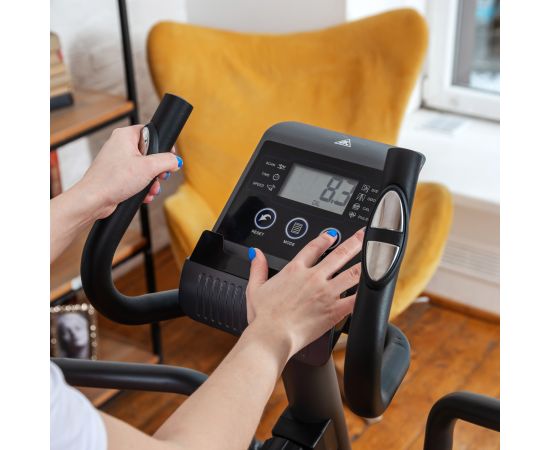 Система нагрузки — магнитная, с механической регулировкой. Для занятий доступно 8 уровней сложности. Для выбора подходящего уровня нагрузки необходимо установить поворотный регулятор в соответствующем положении.