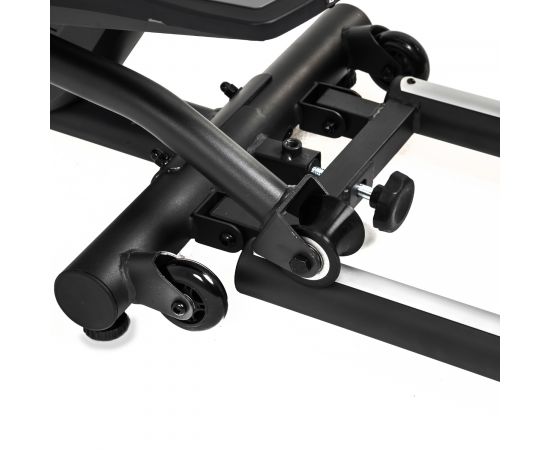Тренажёр удобно хранить, благодаря складной системе. В сложенном виде он не занимает много пространства. Модель оснащена транспортировочными роликами, что позволяет легко перемещать его в доме или квартире. В комплектацию входят инструменты для сборки.