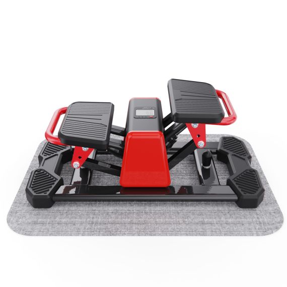 Высота педалей составляет от 18 до 29,5 см, что обеспечивает полноценное движение и позволяет эффективно прорабатывать ноги и ягодицы. Рифленые педали 29 х 15 см обеспечивают надежное сцепление с обувью, а расстояние между ними 30 см создаёт естественное положение ног и снижает нагрузку на суставы. В комплекте есть коврик для защиты пола и дополнительного комфорта во время занятий.