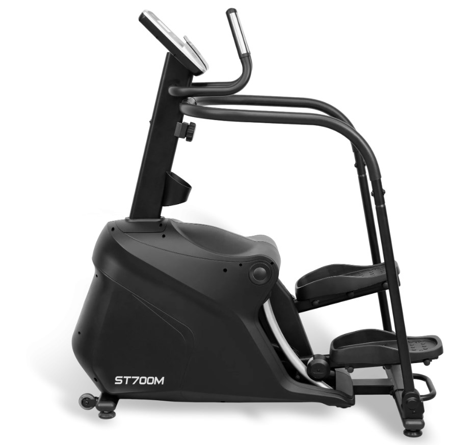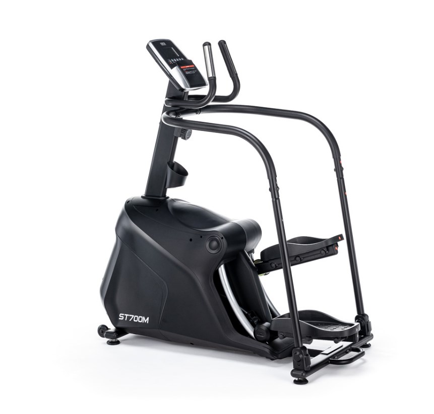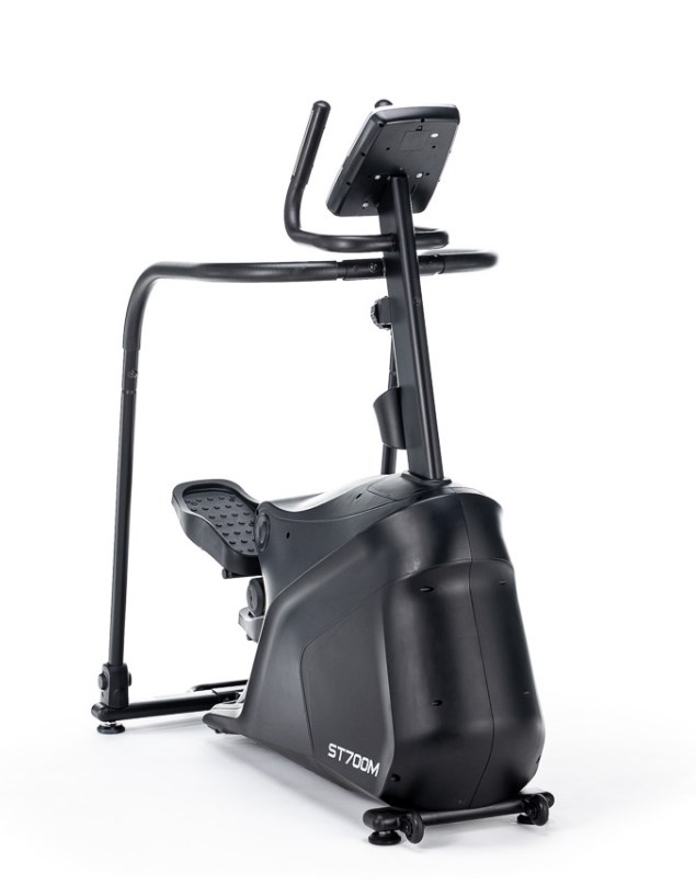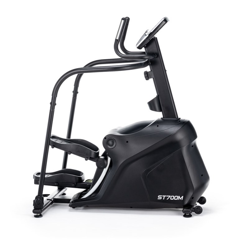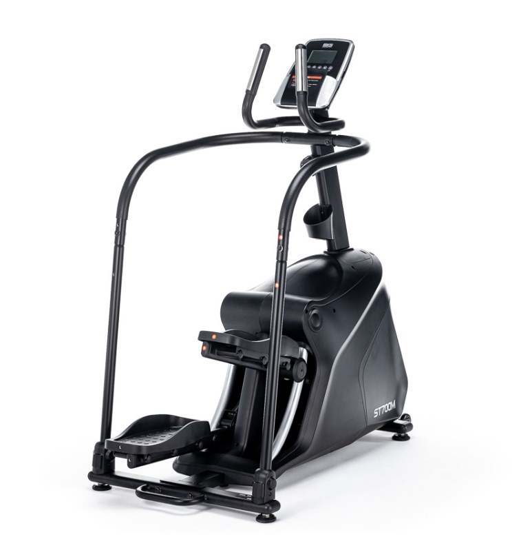 Степперы являются одними из самых безопасных видов кардио оборудования. ST700M не является исключением. Тренажер создан для занятий с низкой ударной нагрузкой на суставы и позвоночник. За счет своей конструкции и отлаженных биомеханических свойств достигается более мягкое воздействие на проблемные участки. Колени не перегружаются и акцент сосредотачивается на самих мышцах. Степпер оснащен магнитной системой нагружения. Маховик, весом 15 кг, позволяющей сделать ход плавным и разнообразить интенсивность тренировок. Для удобства, на оборудовании установлены прорезиненные педали увеличенного размера, которые покрыты антискользящим материалом. Высота шага для ST700M составляет 400 мм. Пользователи могут воспользоваться преимуществами рукояток, на которых расположены сенсорные датчики пульса. Горизонтальные и вертикальные поручни позволяют держать руки в разных положениях и обеспечивают устойчивость пользователя при выполнении упражнений, а также при подходах к спортивному снаряду.