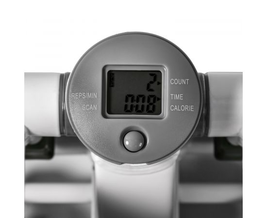 Показания компьютера: время, общее количество шагов за тренировку, ритм, шаг/мин, калории. Питание консоли от батарейки ААА 1,5В - входит в комплект.