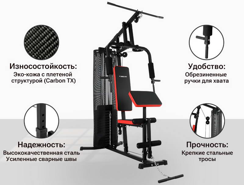 | Тип тренажера | однопозиционный, многофункциональный, мультистанция, грузоблок |